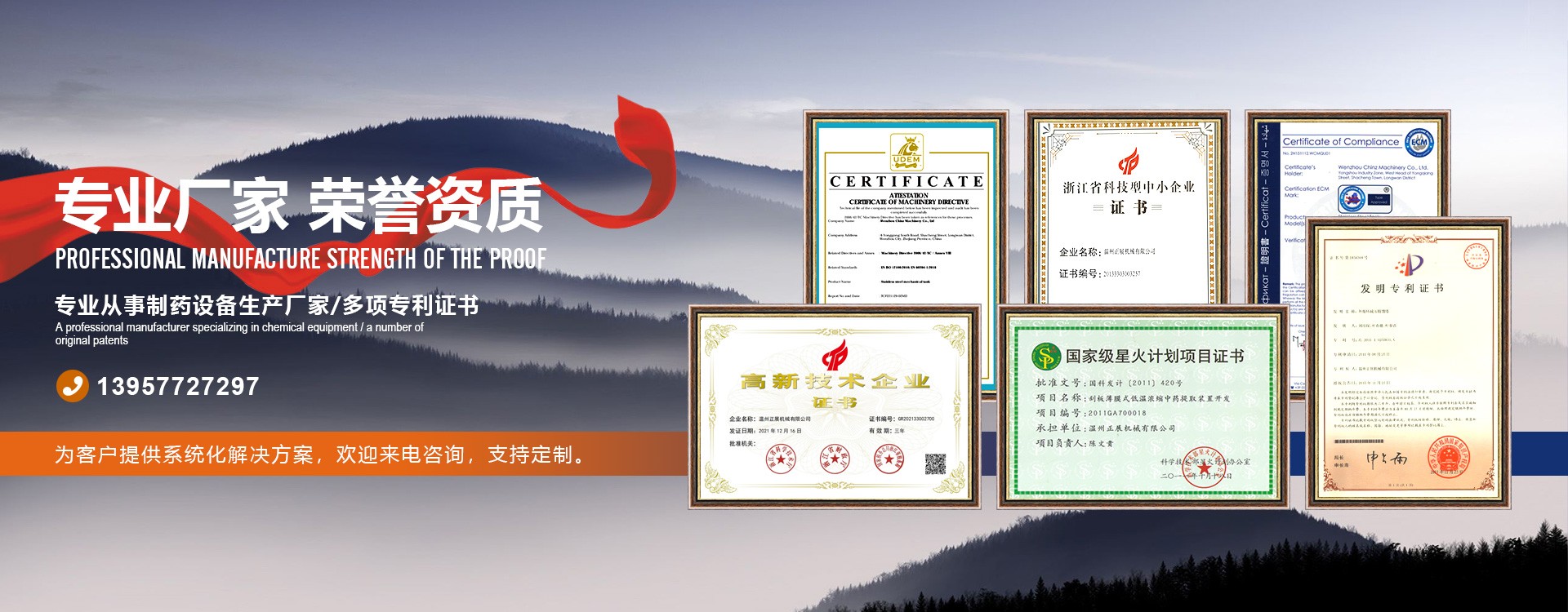 溫州正展機械有限公司是集提取設備、蒸發濃縮、反應配液、精制提純、生物制藥及衛生級流體設備設計、制造、服務于一體的現代化企業。公司以先進的技術服務于客戶,經過多年的不斷進取,建立成一支精干的科技創新隊伍。 正展企業長期全心致力于機械工程和高精度衛生級流體設備研究開發。經過多年技術積累和外向合作,已成功設計開發了各種規格的甲醇和乙醇回收裝置、低溫濃縮設備裝置、熱泵式水醇雙效濃縮器、多功能逆流提取罐組、一體式功能型應用機組、動態逆流吸附樹脂機組等設備。